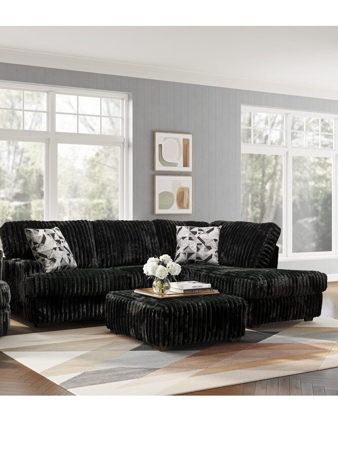 / Black Fuzzy – Ribbed 2 pc Sectional