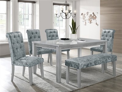 Grey Table with Sparkle 4 Chairs with bling and a Bench